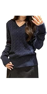 V Neck Sweater Women Vintage Cable Knit Sweaters 2000s Streetwear Pullover Em…
