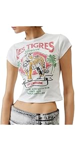 Graphic Baby Tees for Women Y2k Short Sleeve Floral Print Crop Tops Vintage A…